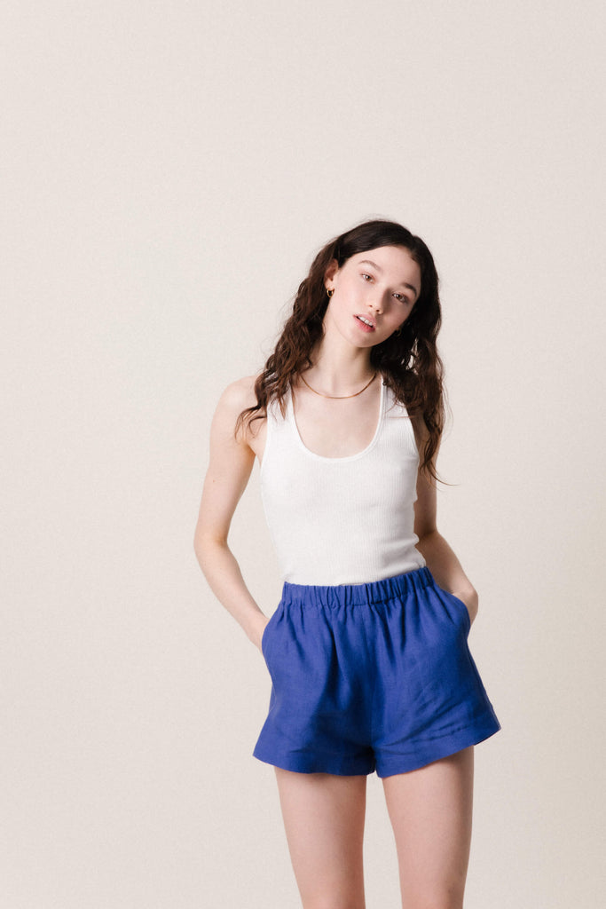 The River Short in Cobalt are an elevated everyday essential with a relaxed fit. They are cut from sustainably-sourced medium weight European linen, have deep pockets and an elasticated waistband. Every pair was responsibly made in small batches in a family-run production house in London. Please note that due to the nature of linen there may be a slight variation in colour from item to item.